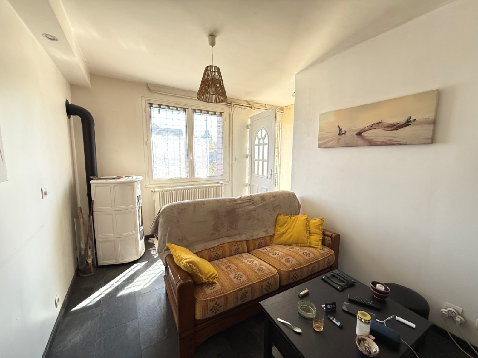 Cette maison comprend une entrée, une salle à manger ouverte sur une cuisine indépendante, un séjour salon avec son poêle à pelet, une chambre, une salle d'eau avec wc à rénover et une chaufferie.