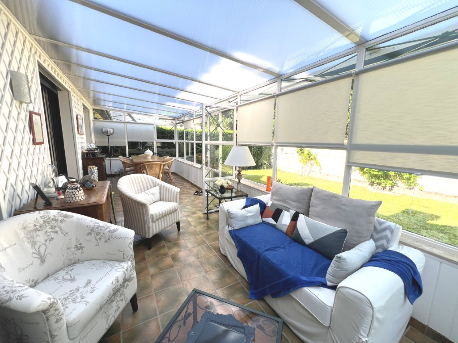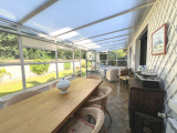 Le rez-de-chaussée se compose d'un séjour salon de 30m2 avec cheminée insert ouvrant sur une véranda chauffée de 23m2, une cuisine indépendante aménagée et équipée, un dégagement desservant une chambre, une salle d'eau et un wc.