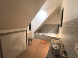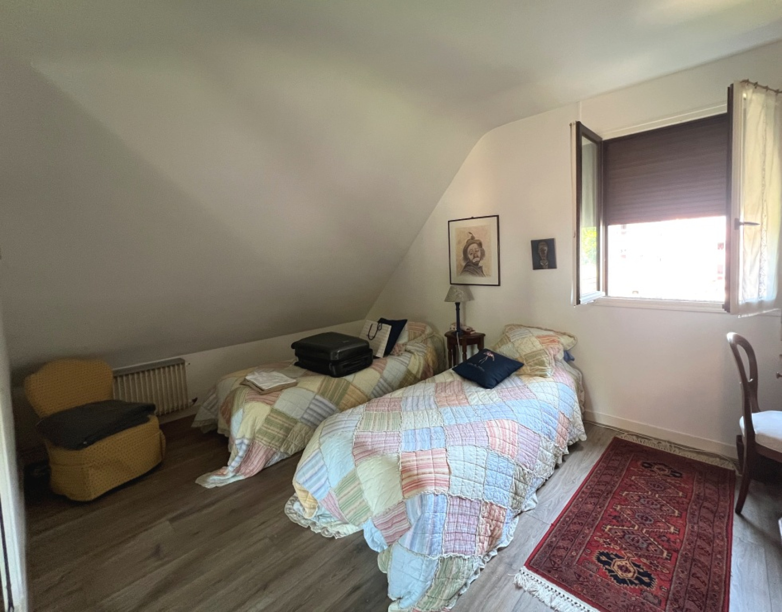 A l'étage, le palier dessert 2 chambres de 12m2, une salle de bain, un wc et une chaufferie buanderie.