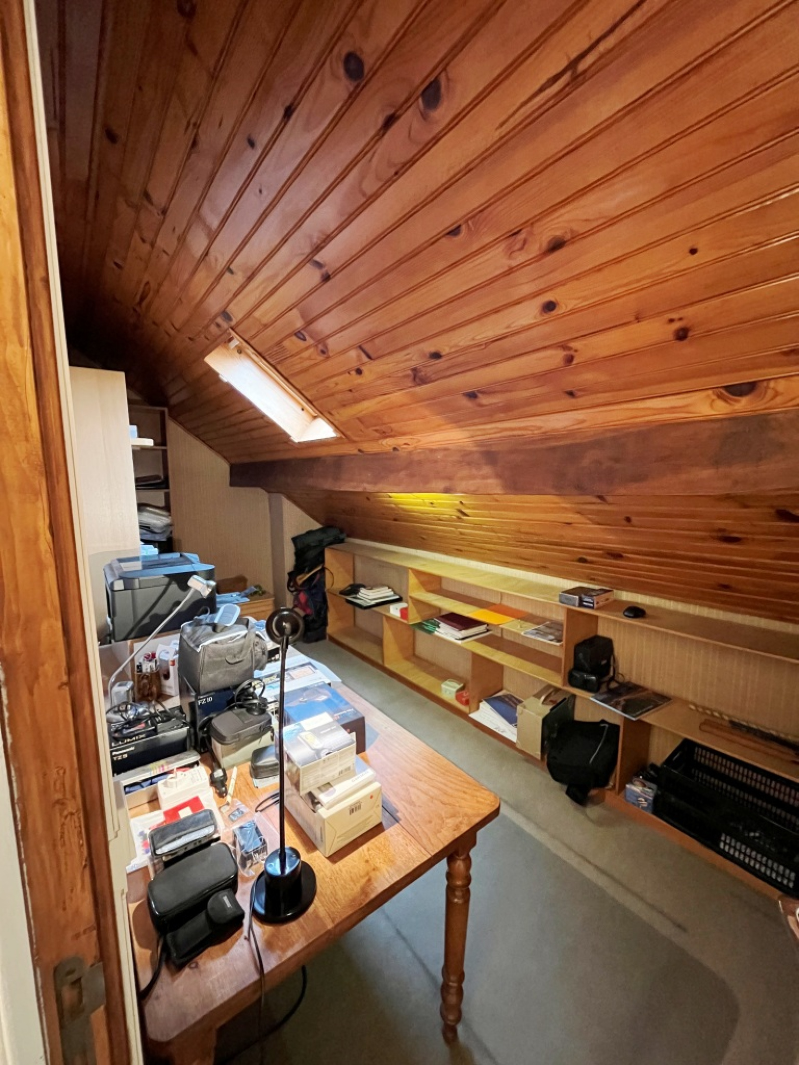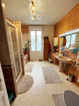 Au premier étage, un couloir dessert 2 chambres avec peinture sablée, un wc lave-main, un petit bureau et 2 greniers de rangement.