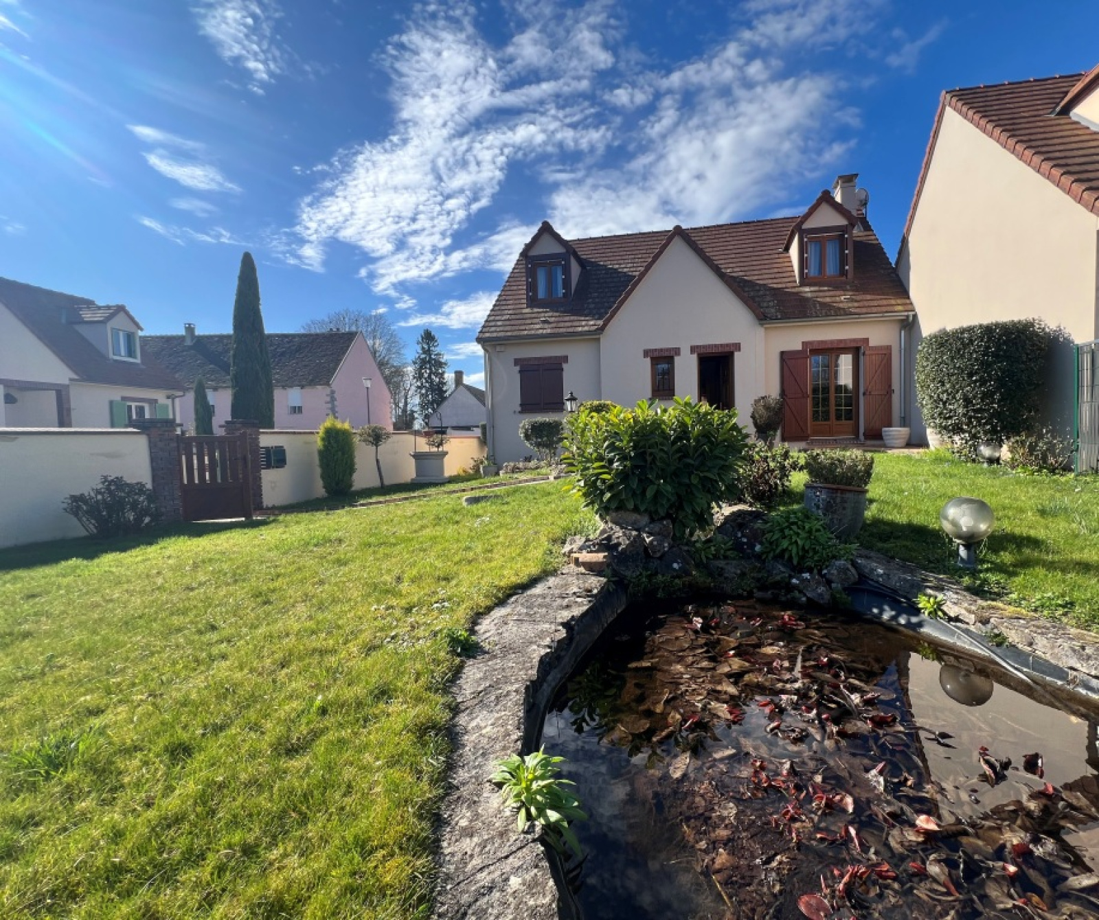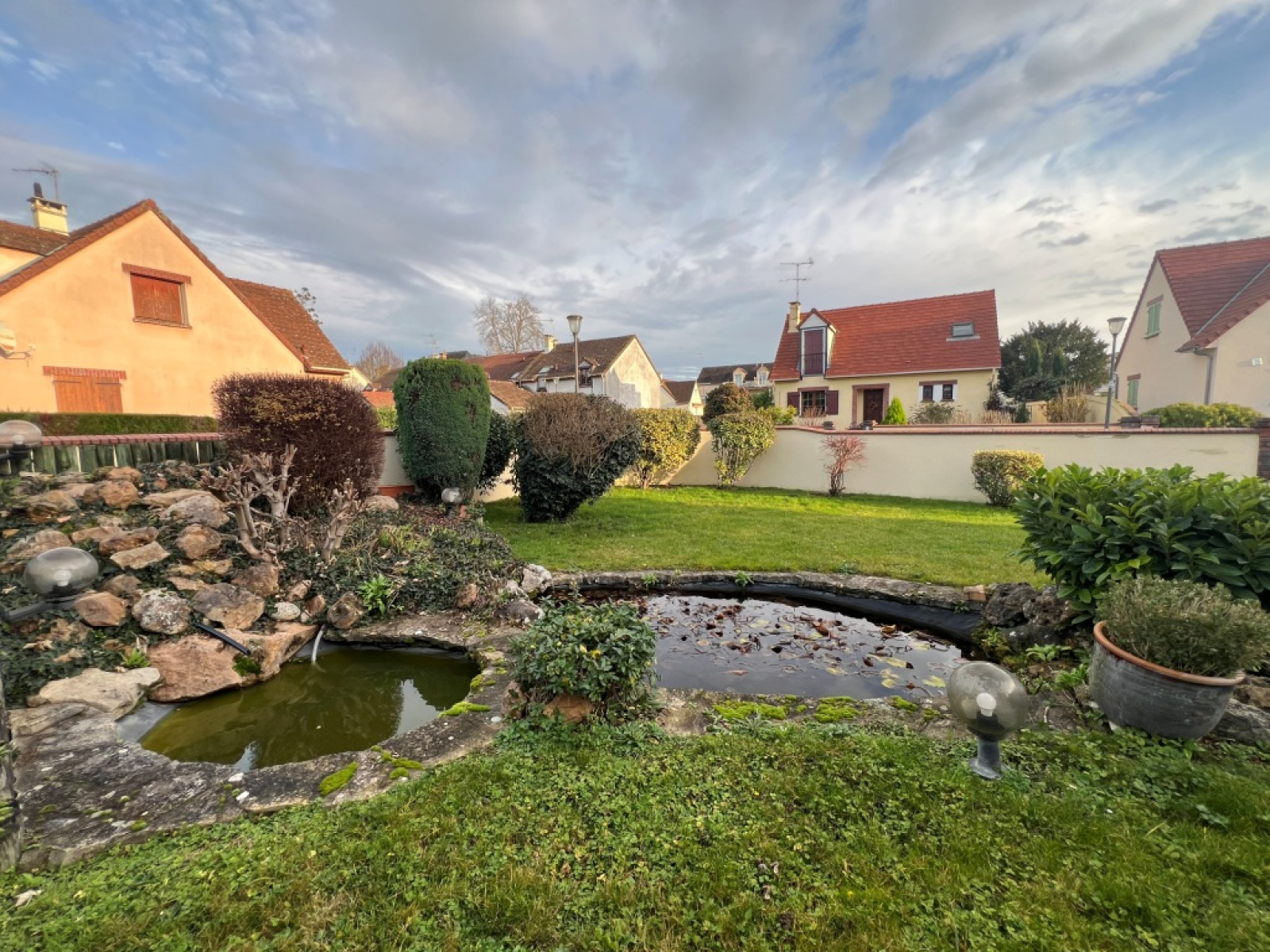 Joli jardin paysager avec son bassin clos de murs