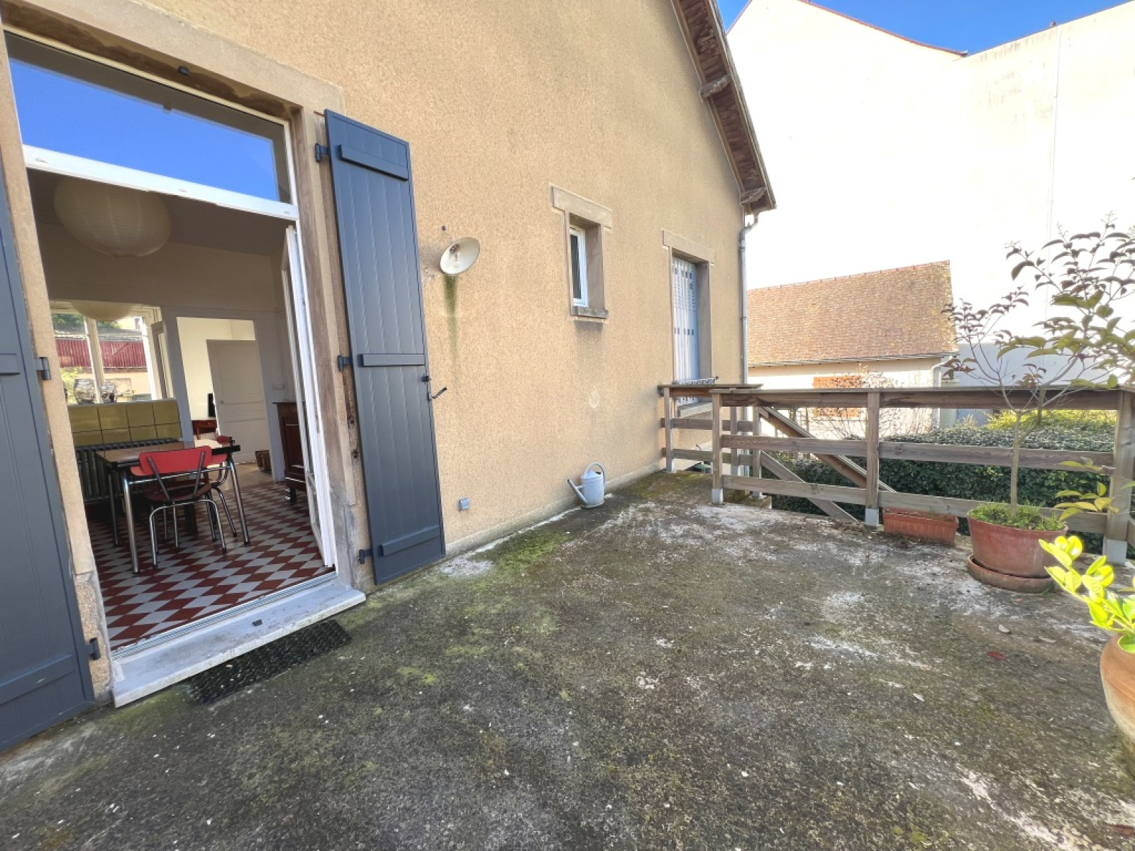 Une terrasse a été crée en 2020 afin de profiter du jardin avec accès depuis la cuisine.