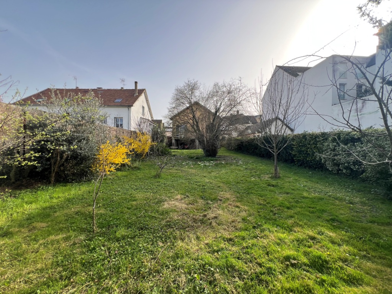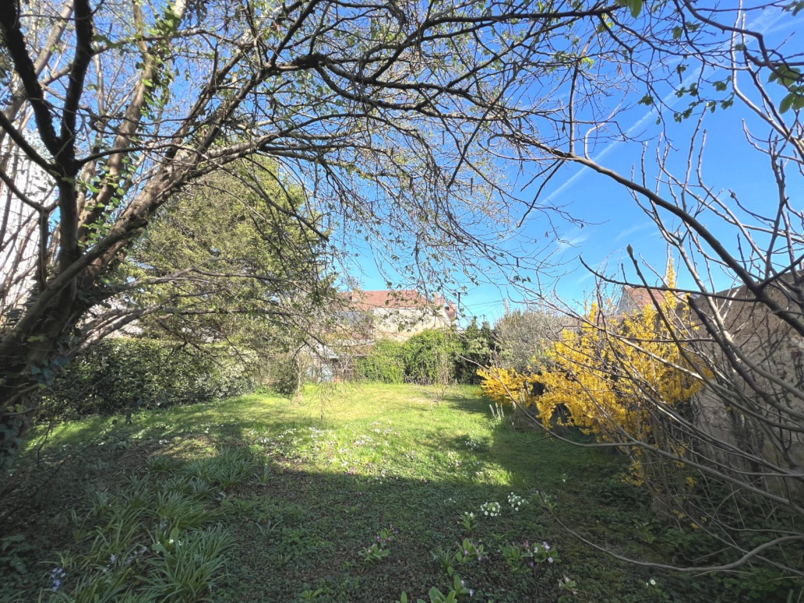 Agréable jardin clos agrémenté d'arbres fruitiers.