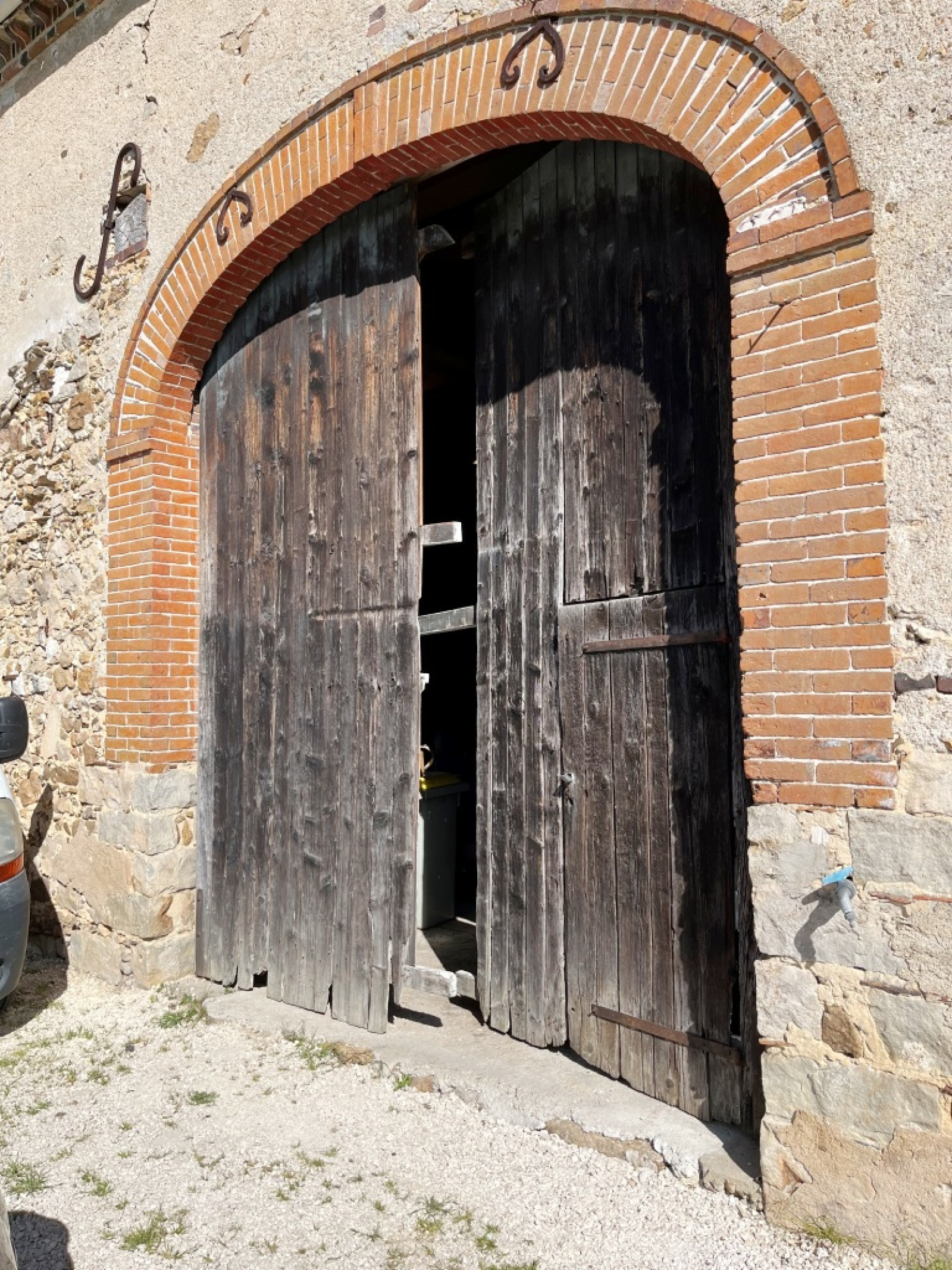 Grande grange attenante et traversante de 65 m² avec ses grandes portes en bois et permettant de se rendre au verger situé à l'arrière de la maison. Coin chaufferie et une cave de25 m².