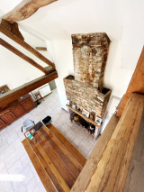 Outre un chauffage central, un premier insert permet de chauffer cette pièce l'hiver ainsi que sa mezzanine de 14 m².