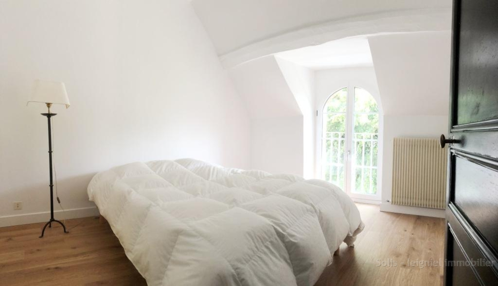 A l’étage, couloir desservant trois autres chambres parquetées de chêne, un wc et une salle de bain.