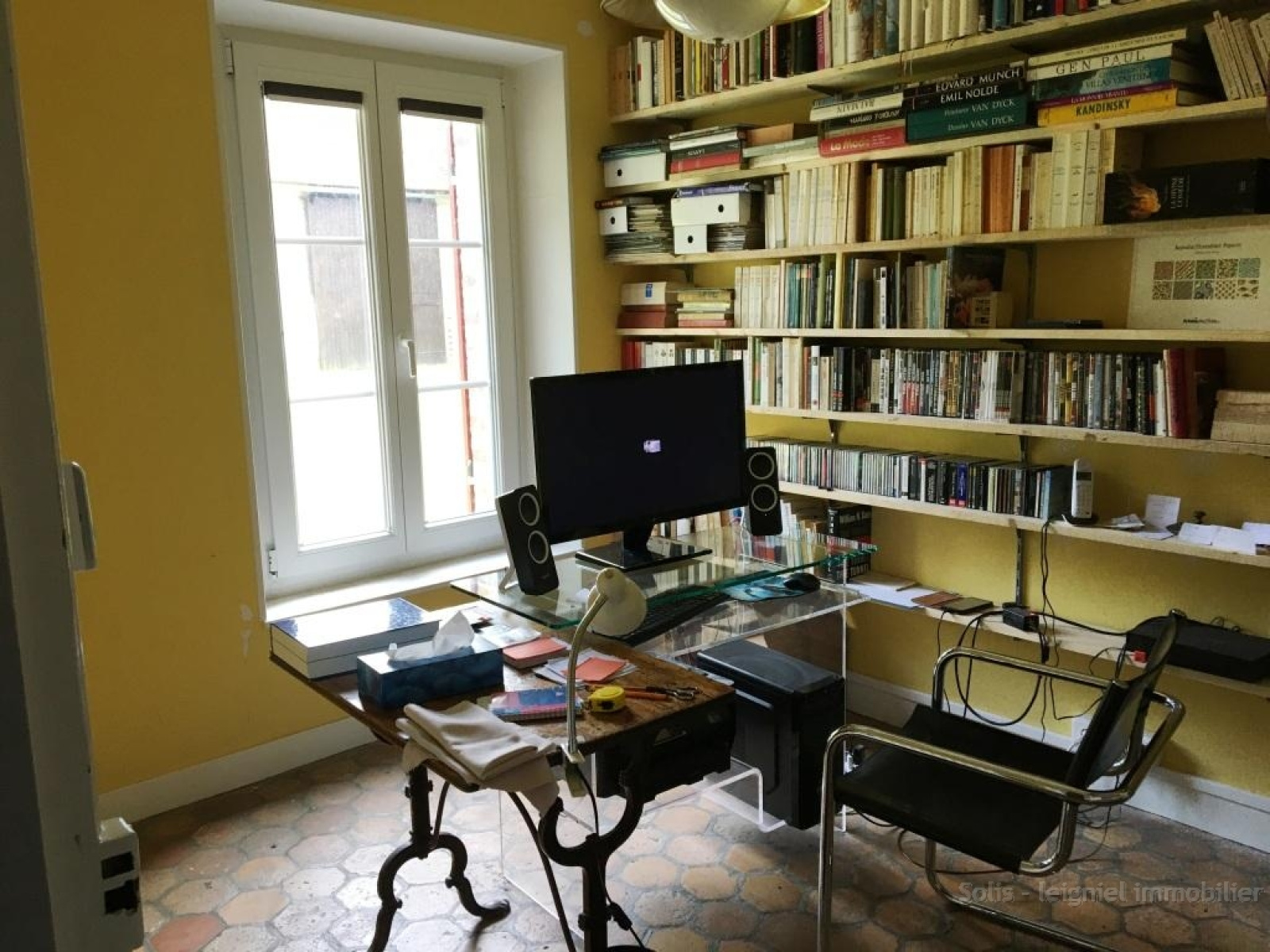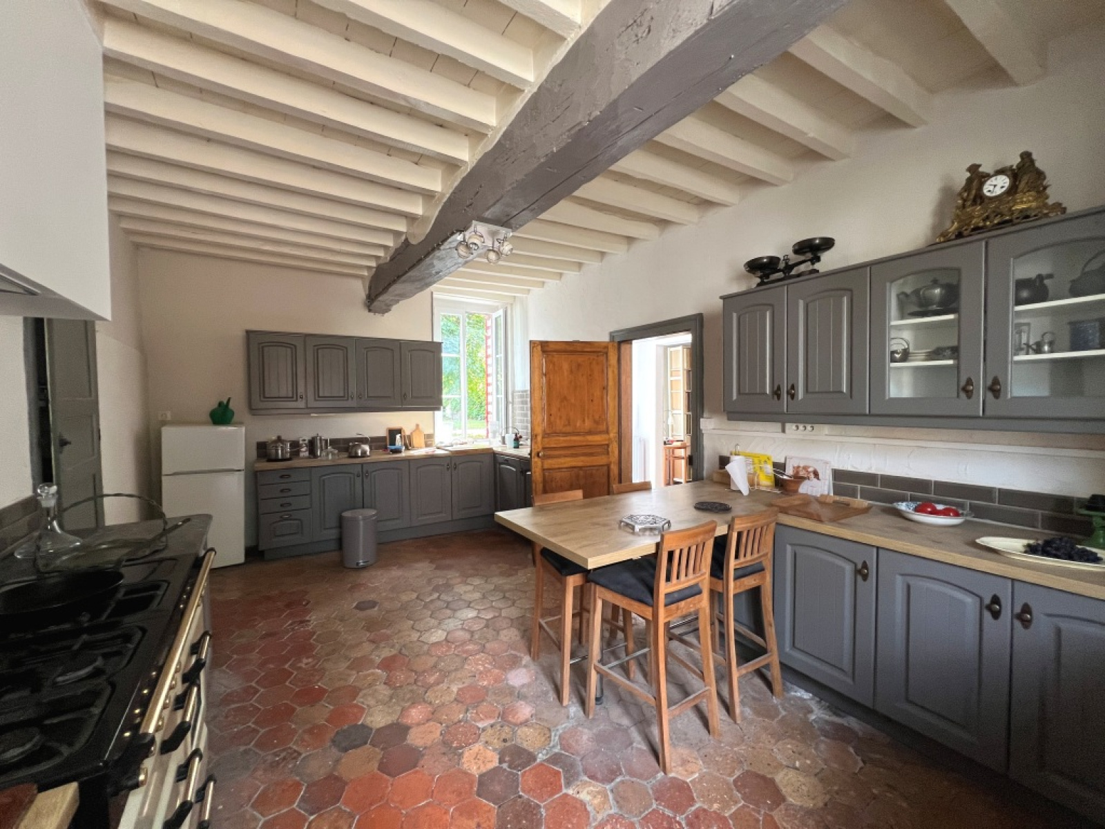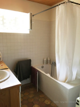 L’entrée traversante de « La Bergerie » dessert une grande cuisine conviviale de 22 m2, un salon de 43 m2 avec cheminée 18 ème. Un couloir mène à un bureau, à une salle de bain avec wc et à une vaste chambre de23 m2, avec porte ouvrant sur le jardin. Tomettes anciennes sur tout le rez-de –chaussée.
