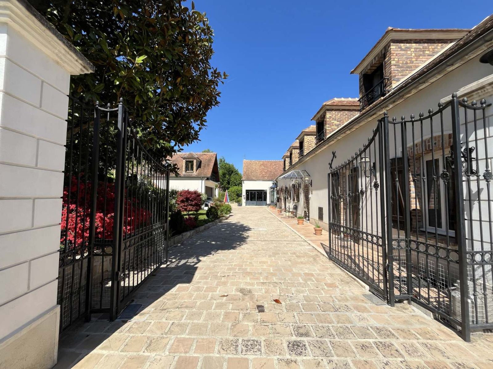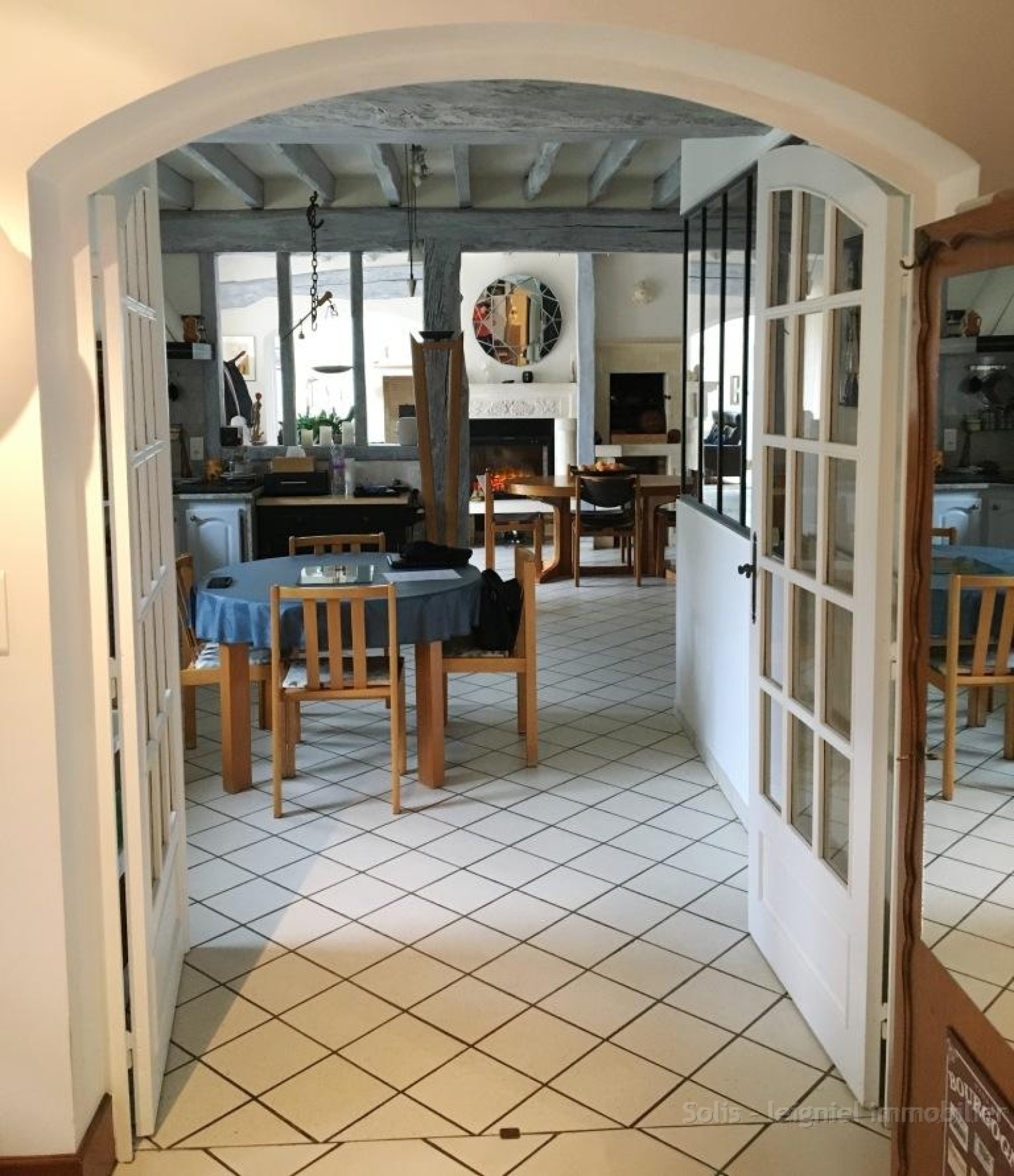 Derrière une belle grille en fer forgé, l'allée pavés de grès dessert les entrées de la maison et des dépendances. Grande entrée avec penderie, vaste cuisine et salle à manger pour 45m², comprenant une première cuisine avec plan granit et piano Lacanche et sa hotte, barbecue intérieur, cheminée et 2ème cuisine vitrée pour stockage et préparation. Accès à la double cave comprenant cellier et cave voutée depuis la salle à manger. A la suite, très beau salon cathédrale de 40 m² clos d'une lumineuse verrière avec volet roulant athermique, chauffage au sol revêtu de marbre blanc. Cheminée du 18eme siècle, placard en boiserie dissimulant la télévision et les équipements audio. Premier escalier en marbre, sécurisé par une rampe sur mesure en fer forgé, menant à une mezzanine et à l'étage. Depuis l'entrée, un couloir dessert l'aile droite de la maison et comprend un grand dressing, 2 chambres de plain-pied, une salle de bain avec douche italienne et un wc.