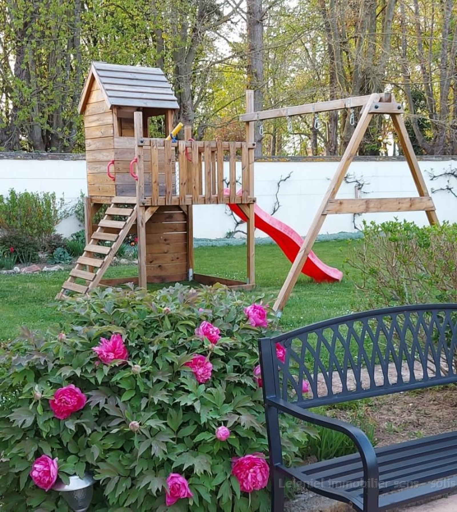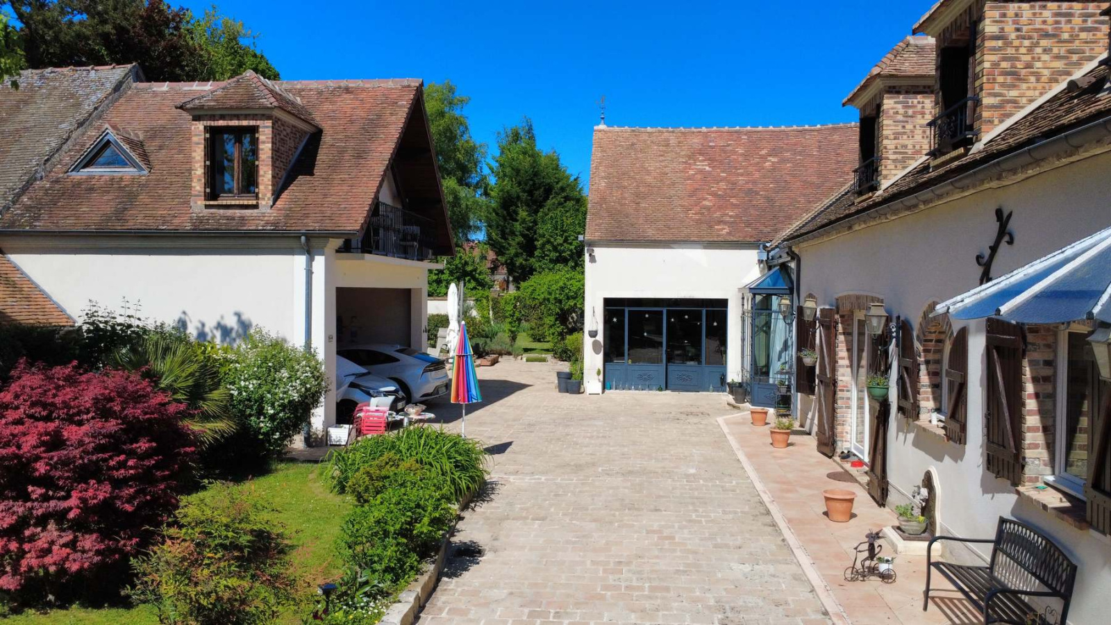 Belle cour d'accueil revêtue de pavés, massif fleuri et arrosé automatiquement, petit chenil et grande terrasse dinatoire. Agréable jardin clos avec pelouse et verger comprenant cerisiers, pommiers, pruniers, bordé d'un grand parc privé voisin. Pompe piquet et puits, terrain piscinable, bûcher. Tout à l'égout disponible à divers endroits pour la création d'un pool house. Quartier résidentiel, calme complet, rivière à 50 m à pied avec chemin de halage pédestre . Bourgs tous commerce avec gare à 5 minutes et autoroute A5 à 20 minutes.