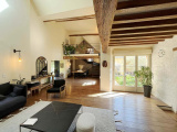 Une terrasse mène à la maison et ouvre sur une généreuse cuisine et son coin repas de 31 m², à la suite, un splendide salon cathédrale de 67 m², parqueté de chêne, avec petit salon avançant sur le jardin, et un coin repas. Poutres discrètes, belle hauteur sous plafond de 6.50m, puits de lumiere et judicieux chauffage au sol sur tous le rez de chaussée permettant une agreable temperature constante. Bureau mezzanine avec escalier moderne en fer forgé abritant un espace salle à manger.