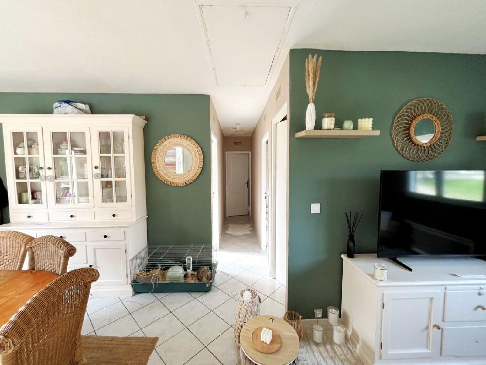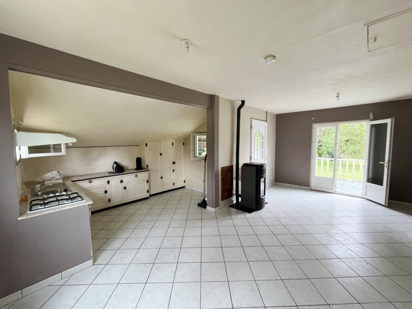 Le chalet en bois de 61 m², recemment repeint, comprend une pièce de vie de 31 m2 avec cuisine aménagée et séjour avec poêle à pellet ouvrant sur une terrasse au sud, puis un couloir dessert deux chambres, un WC et une salle d'eau. Sous-sol compartimenté avec garage de 27 m², cave et atelier de 20m² avec sa pompe piquet (et l'eau municipale.)