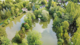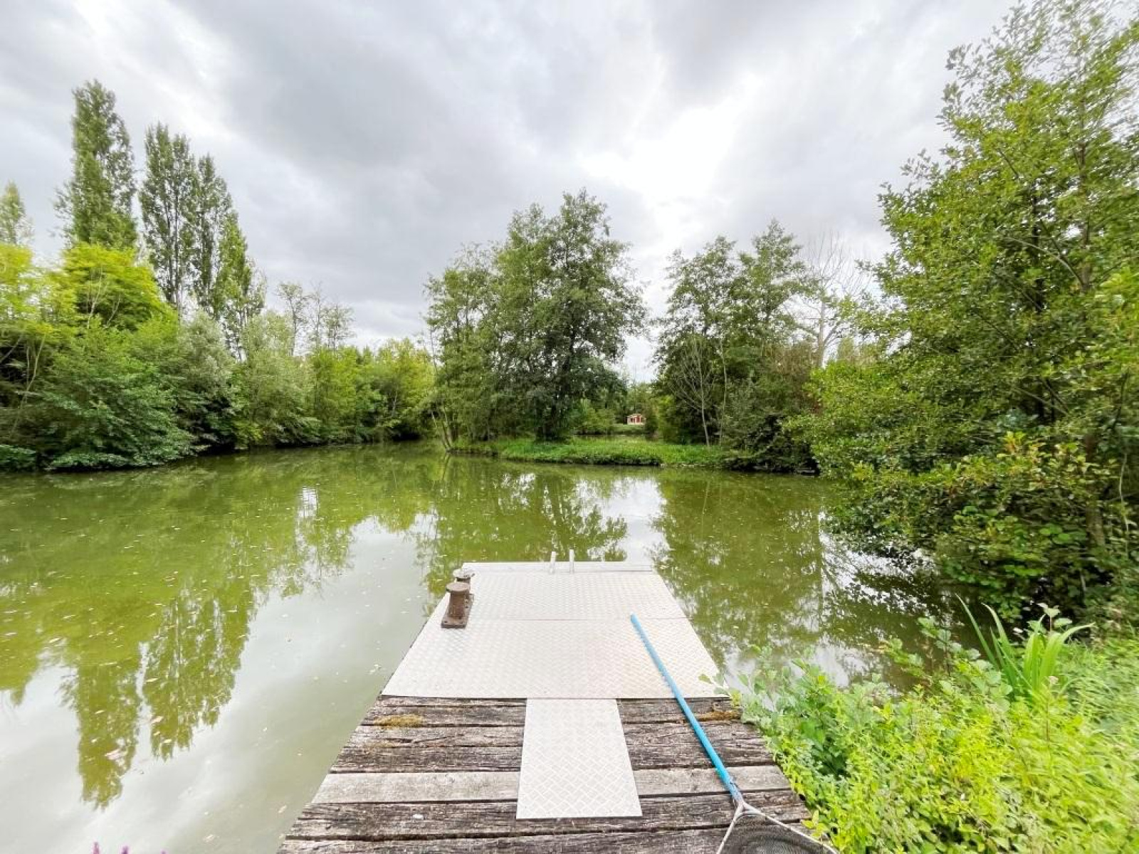 Partie bâtie en zone blanche, gloriette pour déjeuner entre amis, portique pour les enfants, puis, en contrebas, premier ponton sur l'étang poissoneux d'environ 5000 m² bordé de chaque côté par un passage permettant d'en faire le tour et d'accéder au 2e ponton et un petit chalet en bois.