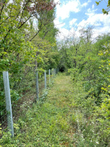 Au bout de la parcelle, grand verger et portail ouvrant sur le chemin de halage de l'Yonne.