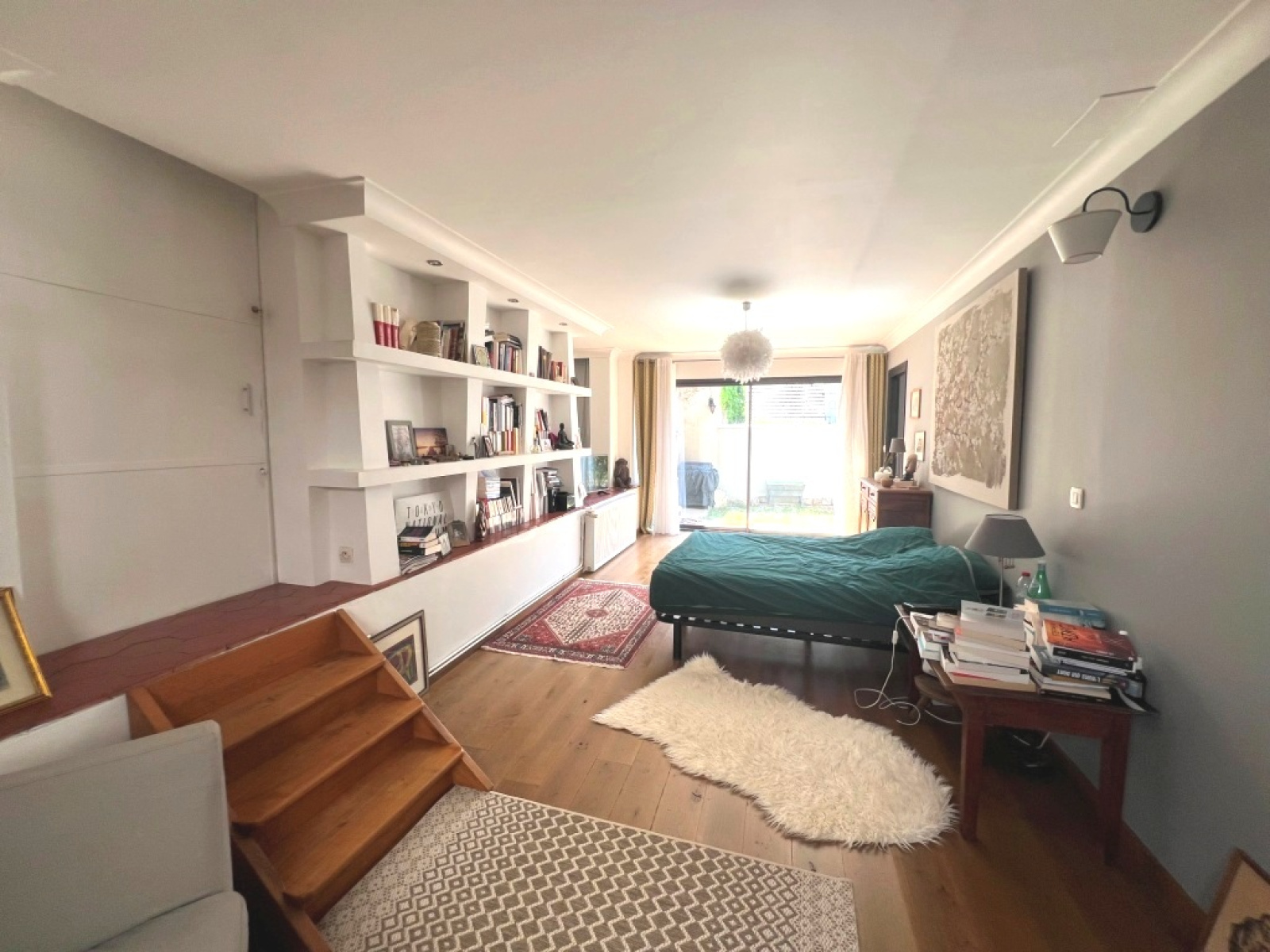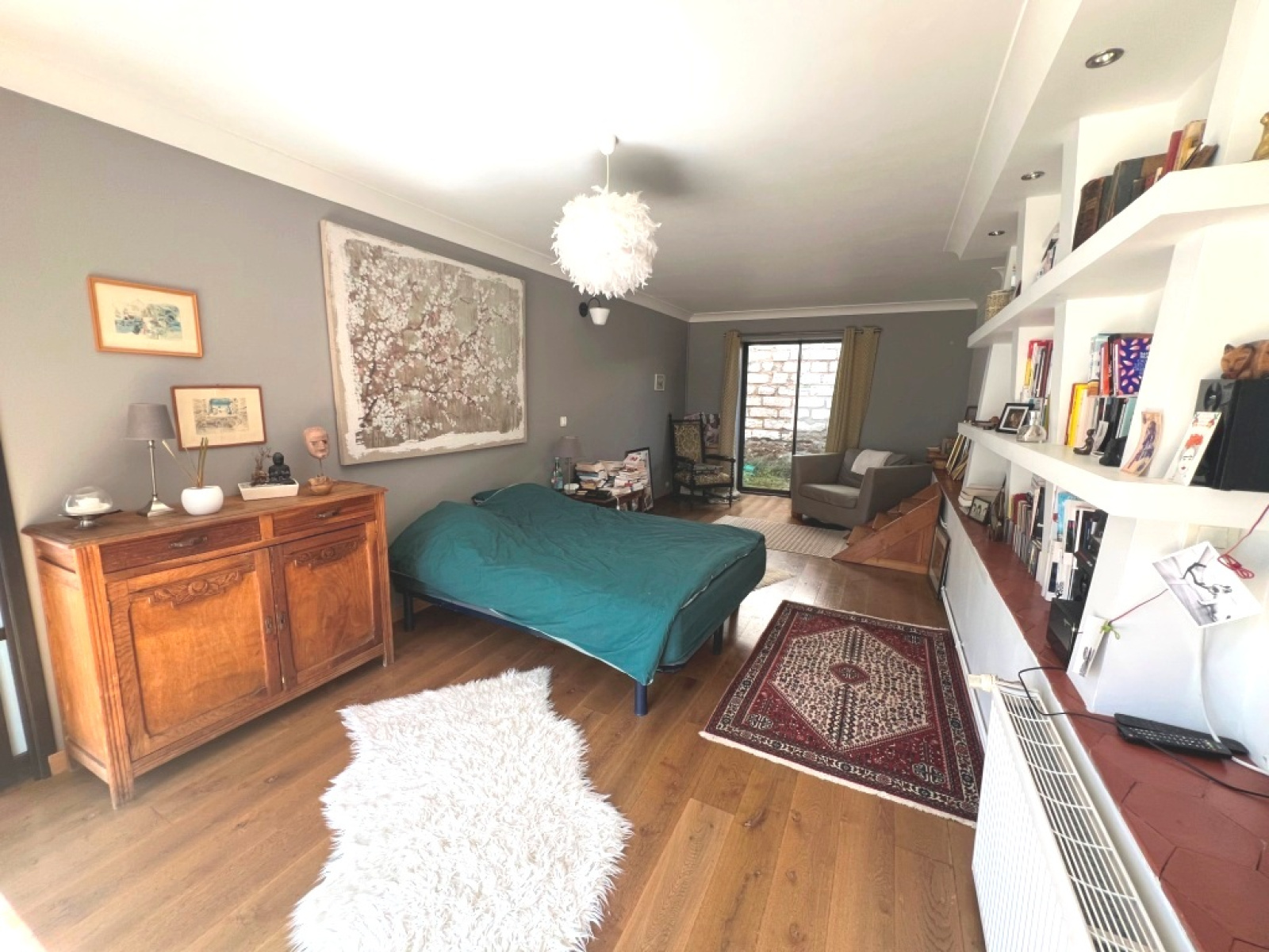 Une chambre de plain pied de 16m2 lumineuse ouvrant sur le jardin, une salle d'eau avec wc, un dressing et une buanderie complètent le rez-de-chaussée.