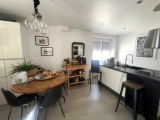 Au rez-de-chaussée: l'entrée dessert d'un côté une cuisine contemporaine aménagée et équipée et de l'autre côé, un salon de 35m2 avec son poêle à bois, baigné de lumière par 2 baies vitrées ouvrant sur le jardin.