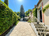 Côté jardin: cour d'accueil avec garage, et ... Quelques marches plus haut, agréable jardin fleuri en restanques, toujours ensoleillé, clos de murs, sans vis à vis, avec divers fruitiers, double terrasse, local jardinage et petite dépendance de18 m² pour rangement. Belle vue sur le village et la vallée.